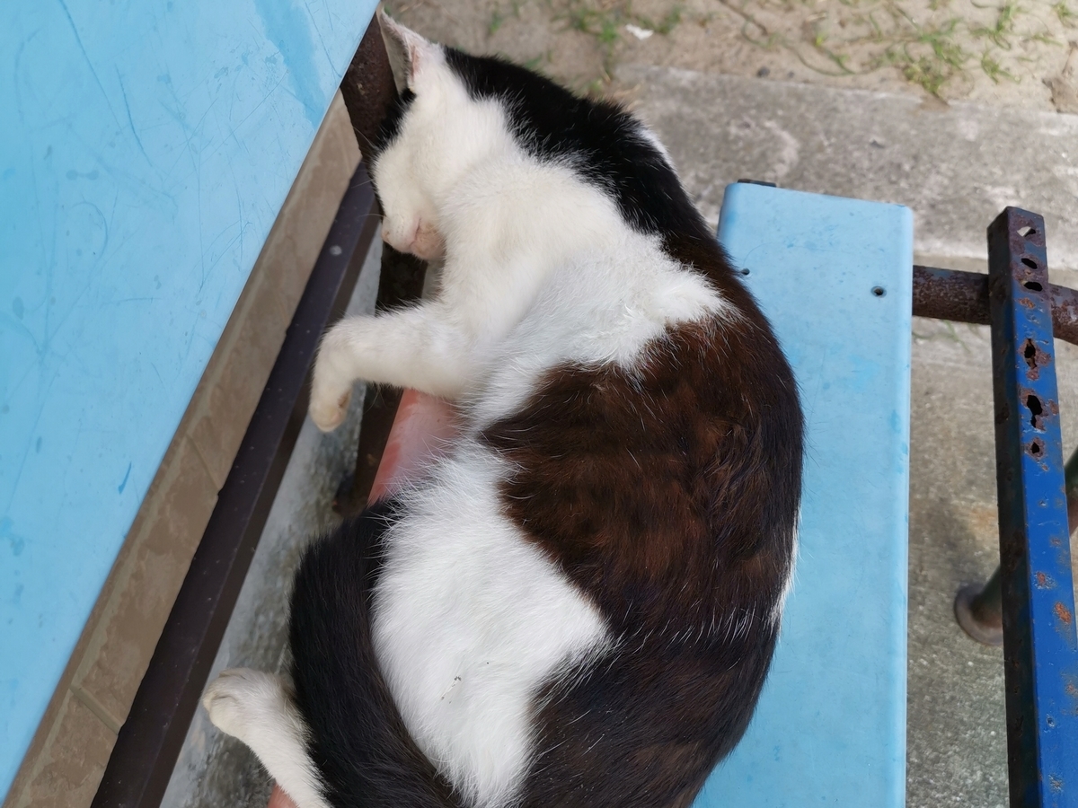 港の近くにさっそく猫がいました。幸先の良いスタートです。